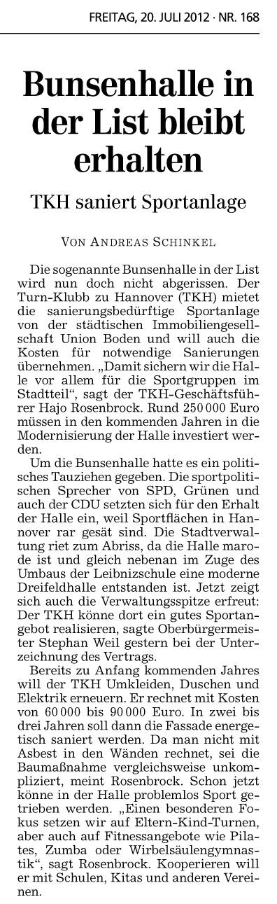 Beitrag in der Hannoverschen Allgemeinen Zeitung (HAZ) - 20.07.2012