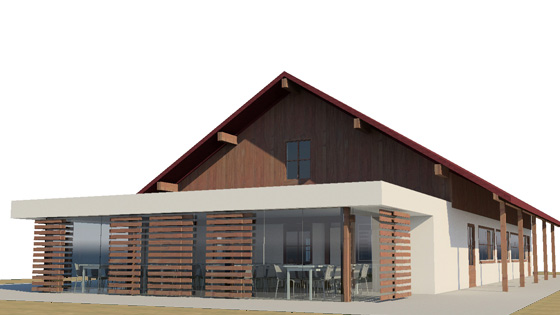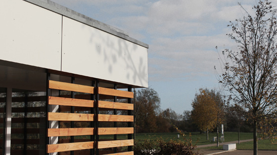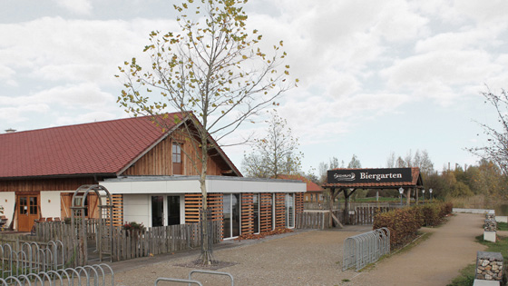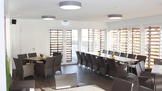 Ein verglaster Baukörper - ob als Veranstaltungs-, Besprechungs- oder Gastronomieraum läßt den Blick auf den See schweifen.