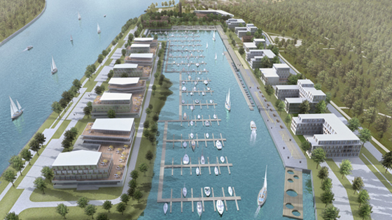 Visualisierung auf Grundlage eines Konzeptentwurfes eines Marina-Hafens an der Ostsee.